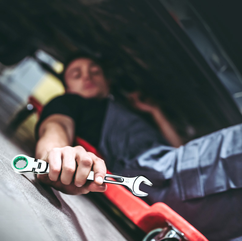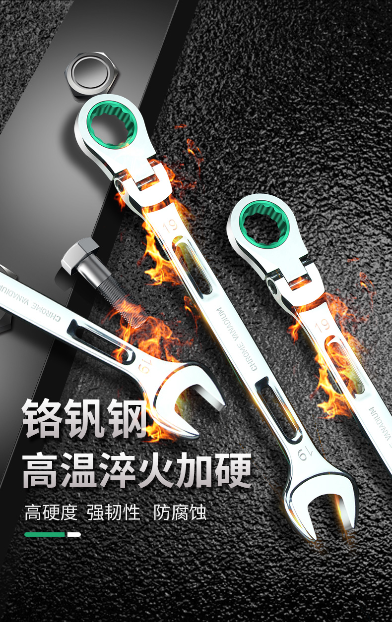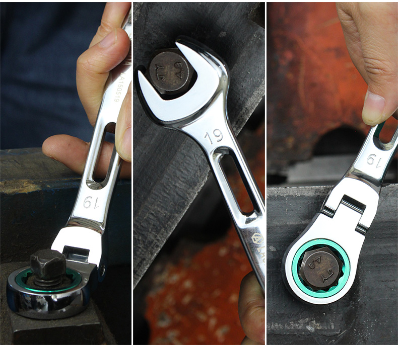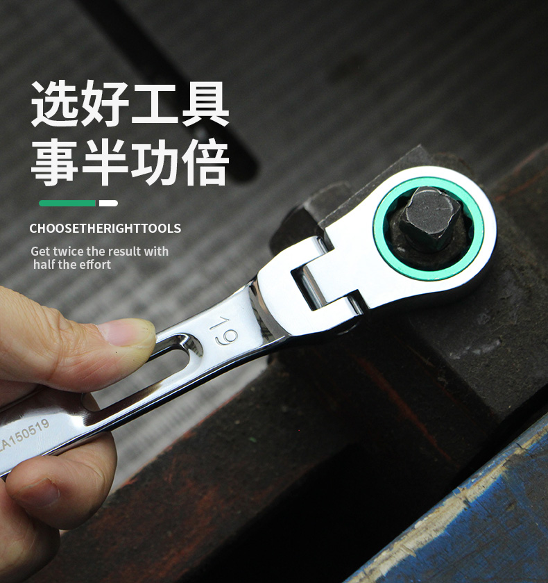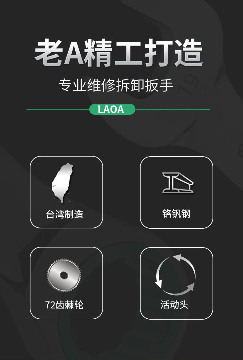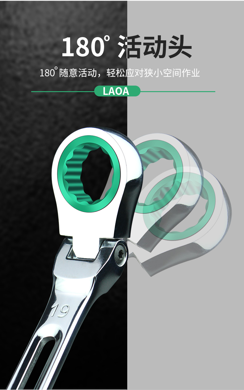 老A (LAOA)铬钒钢迷你两用棘轮扳手双头短柄棘轮开口扳手快速扳手