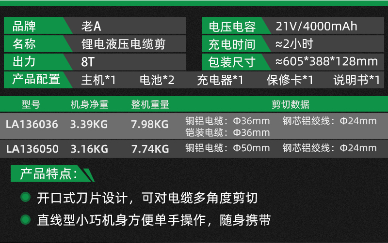 老A(LAOA)锂电液压线缆剪电动电缆剪省力液压断线钳电动液压剪刀LA136025