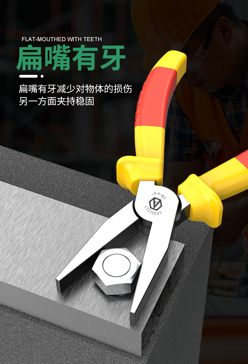 注塑型双色绝缘扁嘴钳6"