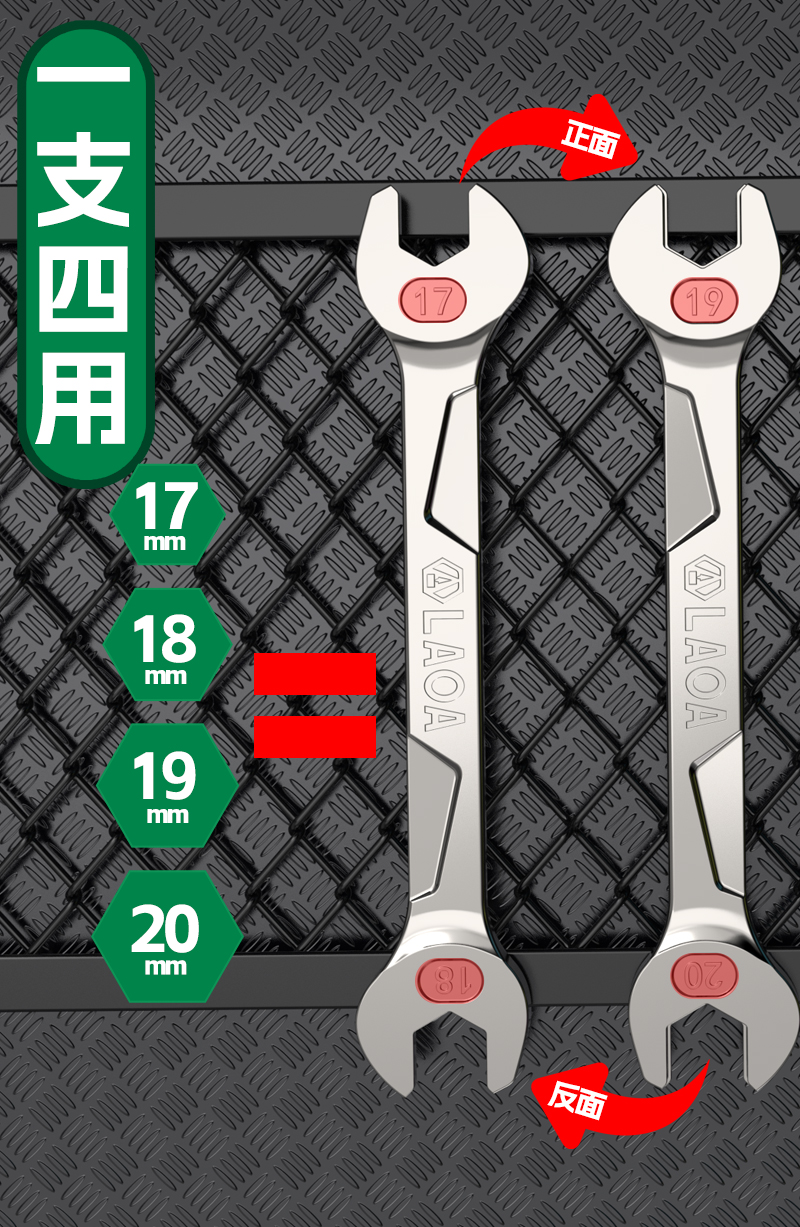 老A(LAOA)不锈钢开口扳手双头多功能多功能螺母扳手套装多规格不锈钢开口扳手 5.5-20mm LA151301 LA151202 LA151203 LA151204