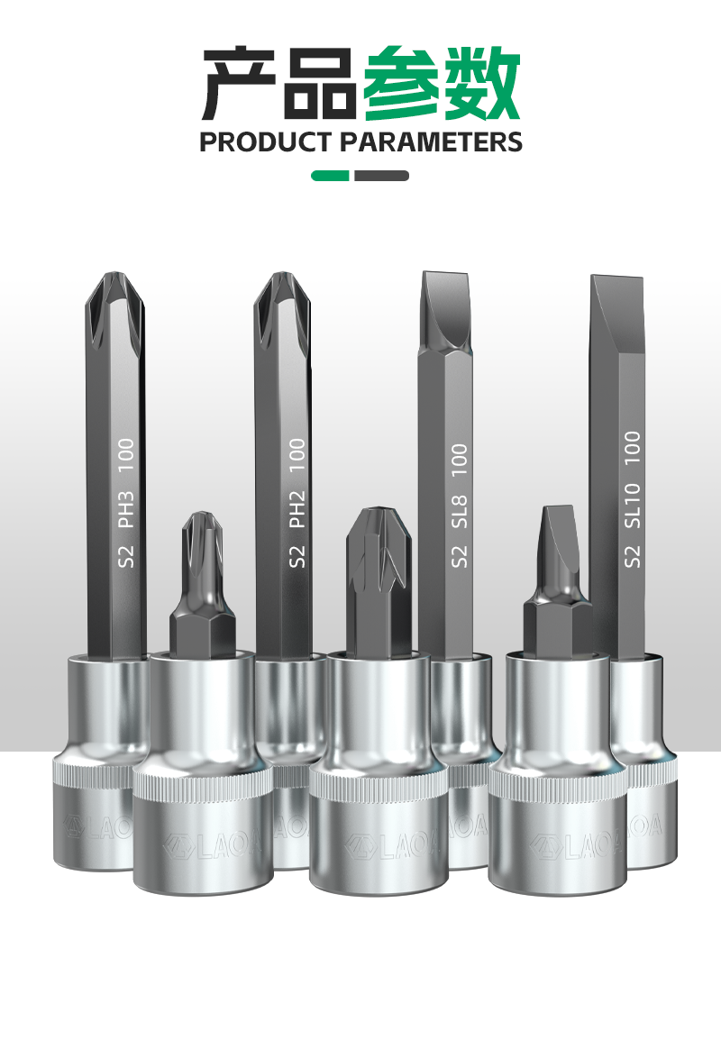 老A(LAOA)老A冲击套筒批头套装组合螺丝刀加长披头1/2电动内6角旋具套筒批头1/2" 3/8" 1/4"旋具套筒头批头60mm LA156470 铬钒钢材质 耐磨耐用