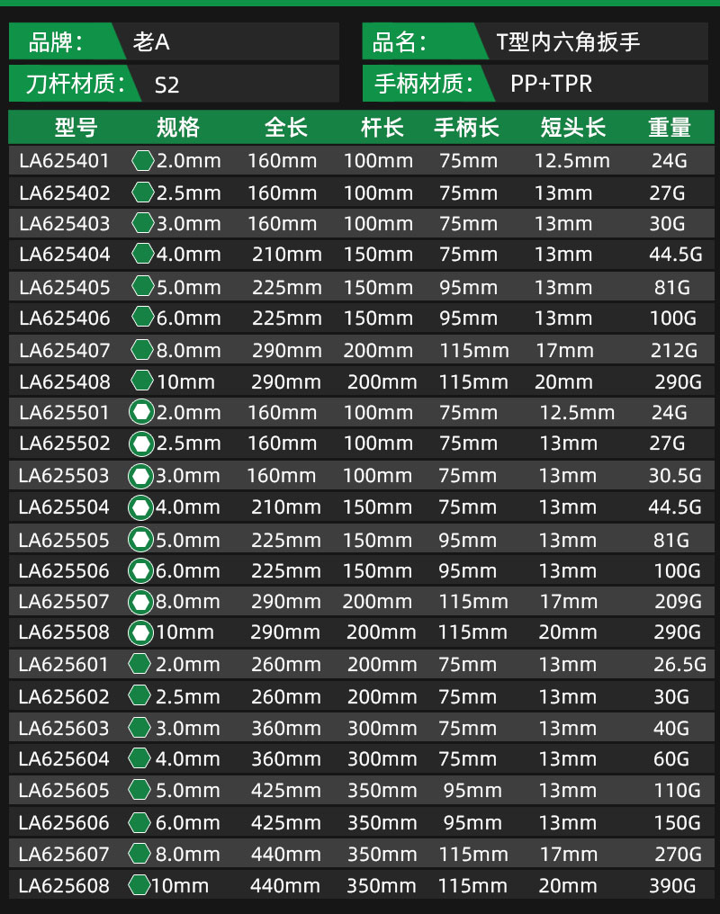 新品双色柄T型平头内六角扳手2-10MM LA625401(替换LA152089)