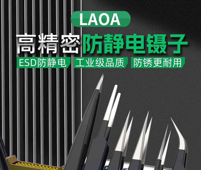 新品老A(LAOA) 老A ESD防静电302不锈钢镊子圆尖嘴扁平嘴弯尖嘴弯尖嘴
