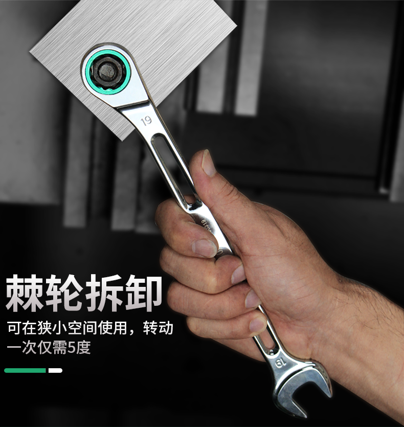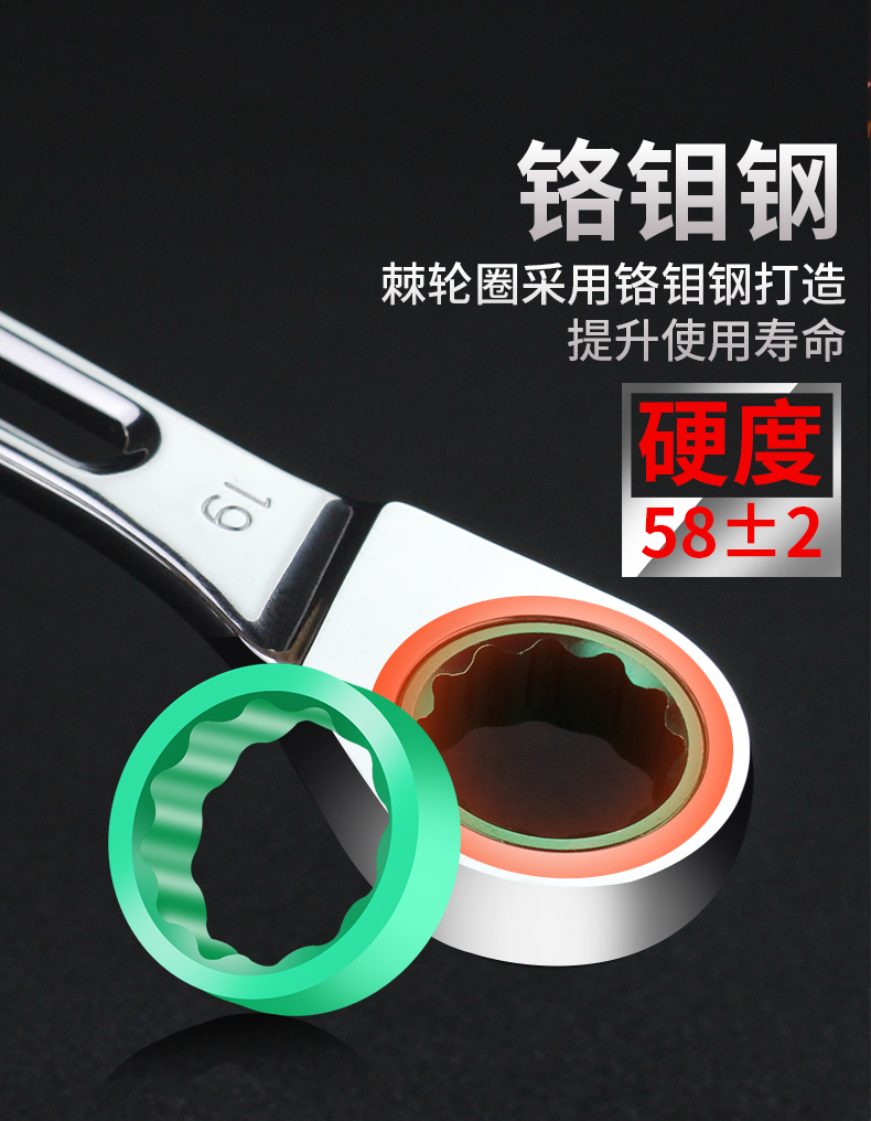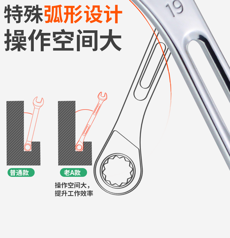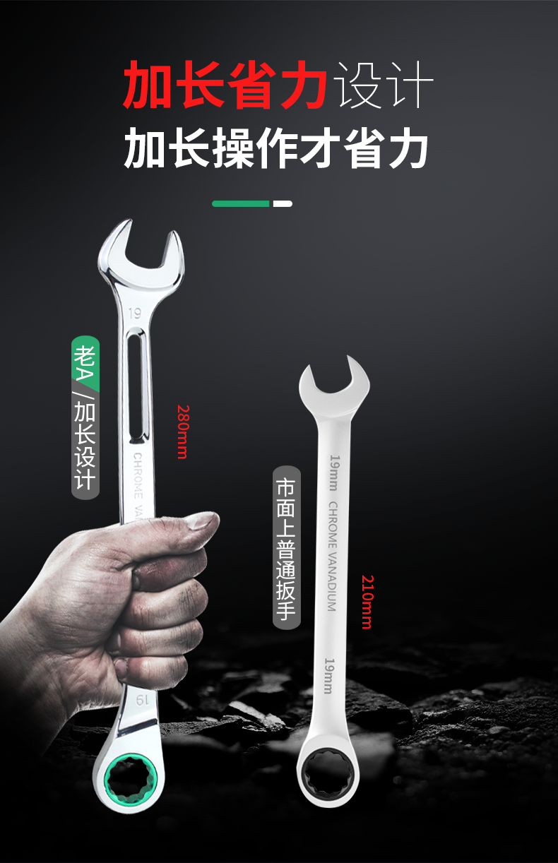 老A(LAOA) 铬钒钢两用棘轮扳手快速棘轮扳手 加长开口梅花快速扳手
