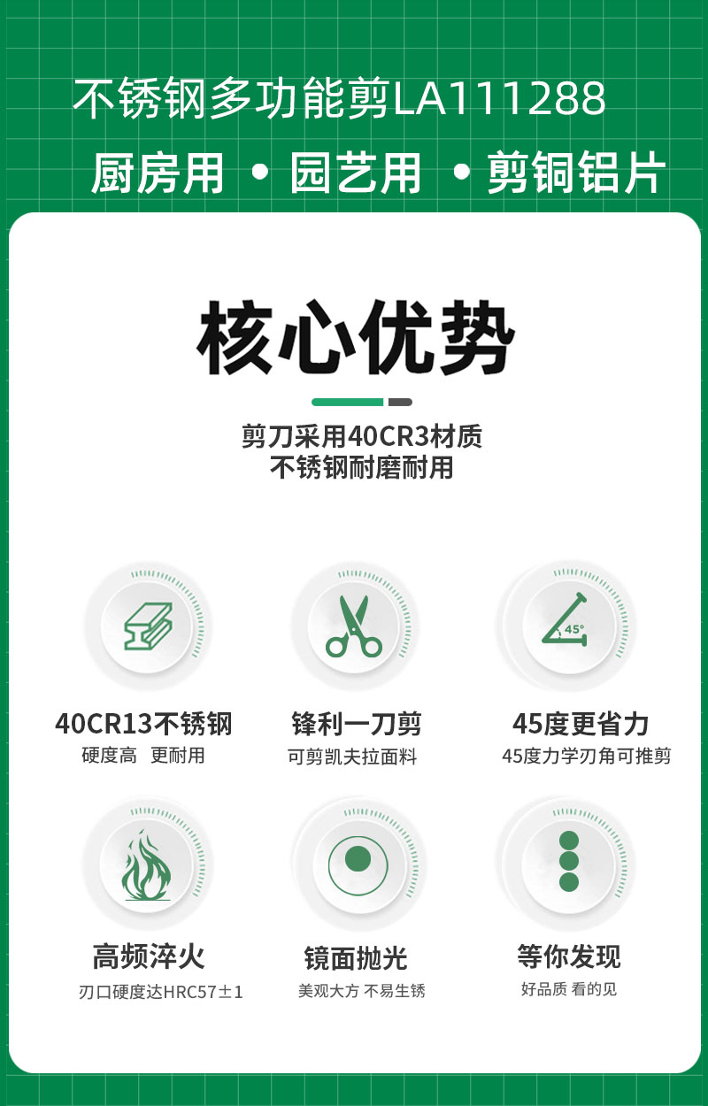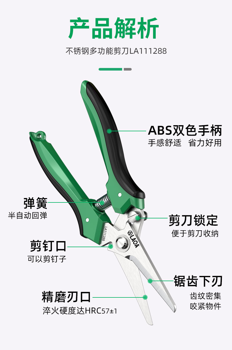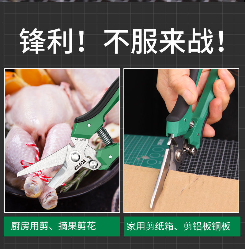 老A(LAOA)不锈钢多功能剪园艺剪厨房家用剪刀剪铜铝片电工专用剪强力剪8"电工剪 LA111288