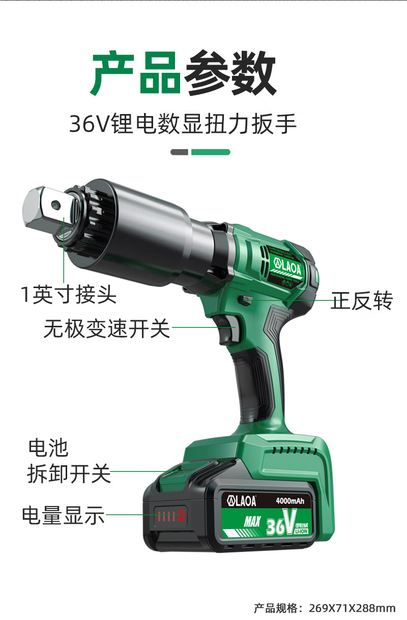 老A(LAOA)工业无刷锂电钻数显电动扳手 大扭力电动扳手 充电式36V锂电数显扭力扳手LA425050 LA425070 LA425140 LA425200