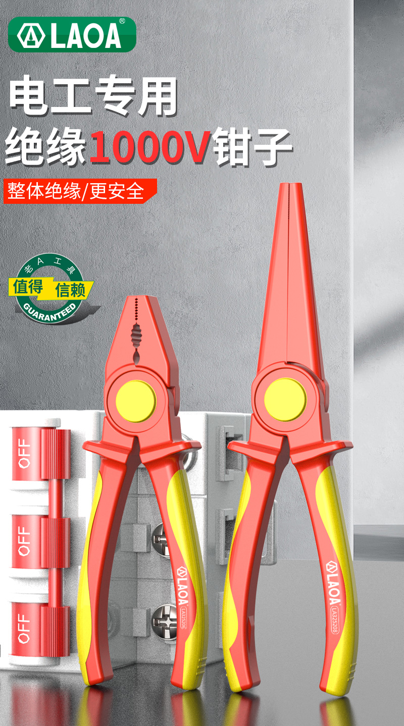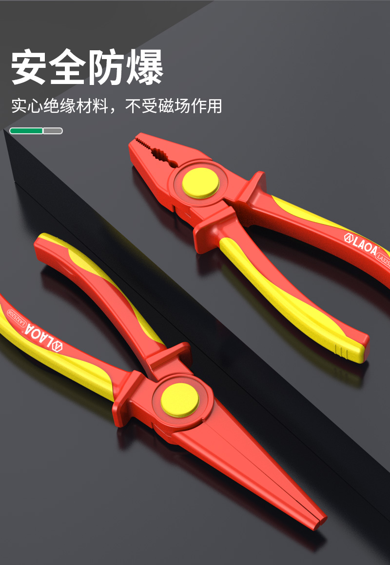 老A(LAOA)电工绝缘老虎钳实心钳子1000V耐高压绝缘钢丝钳多功能绝缘钳子实心绝缘钢丝钳8寸“ 尖嘴钳9寸” 塑料钳 LA325206 LA325208