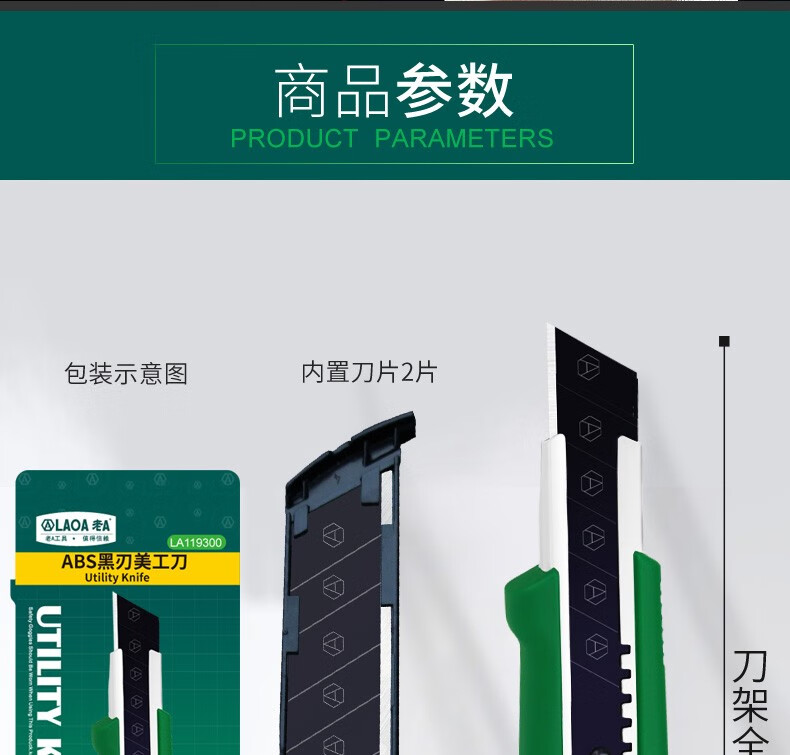 老A(LAOA)ABS黑刃美工刀 LA119300重型 铝合金美工刀多功能壁纸刀片墙纸刀架手工刀具裁纸