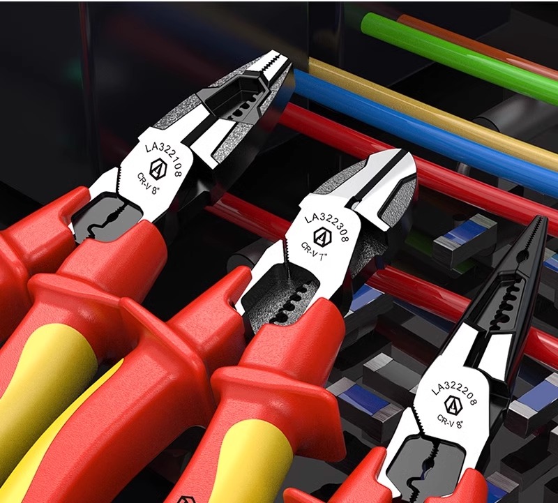 老A(LAOA)绝缘8寸钢丝钳耐压尖嘴钳多功能钓鱼钳剪切压端子剥线钳电工钳 LA322108,LA322208,LA322308