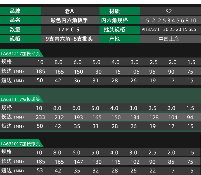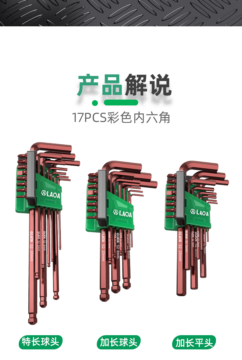 老A(LAOA)内六角扳手套装 多功能内六方6角球头平头扳手 六棱扳手螺丝刀